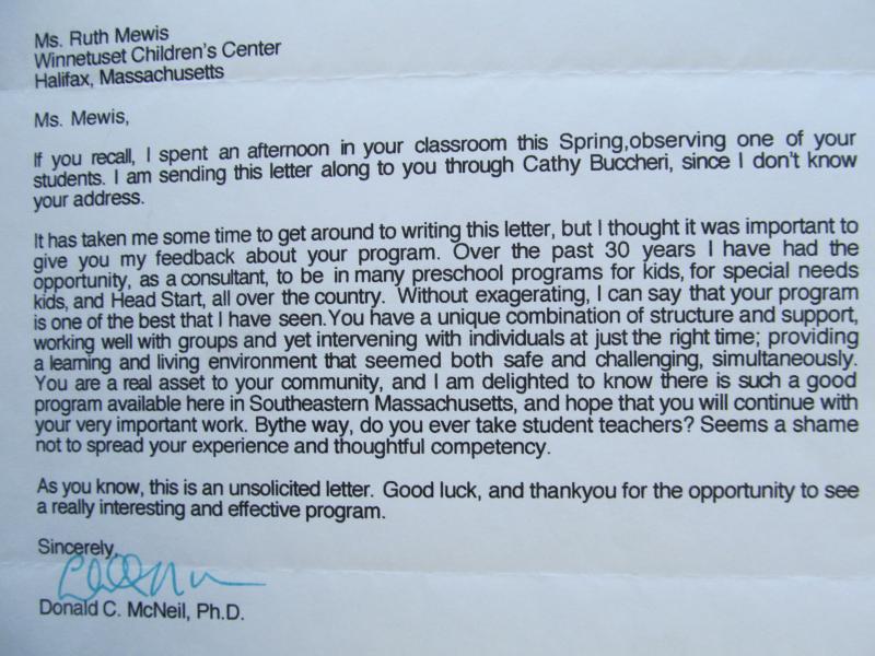 Winnetuxet Children’s Place was developed because of my interest in and commitment to young children and their families. I provide unique qualities, talents, interests and skills which are needed to make up a well-balanced administrative, teaching and support system for the school. My charge is total responsibility of personal and professional goals: to achieve harmony and mutuality throughout the school with respect, tolerance, acceptance, loyalty, patience, honesty, trust, confidentiality and friendship.